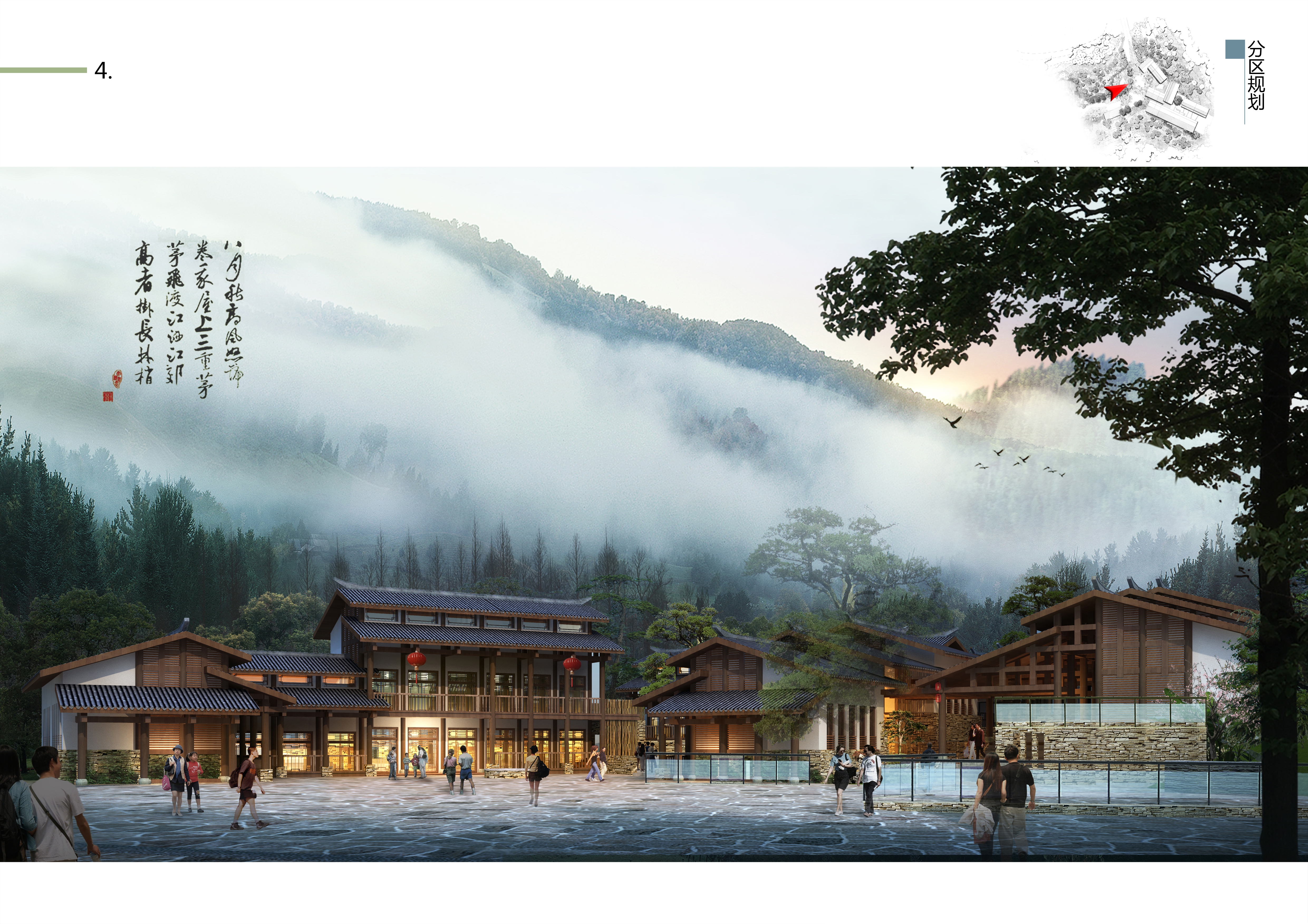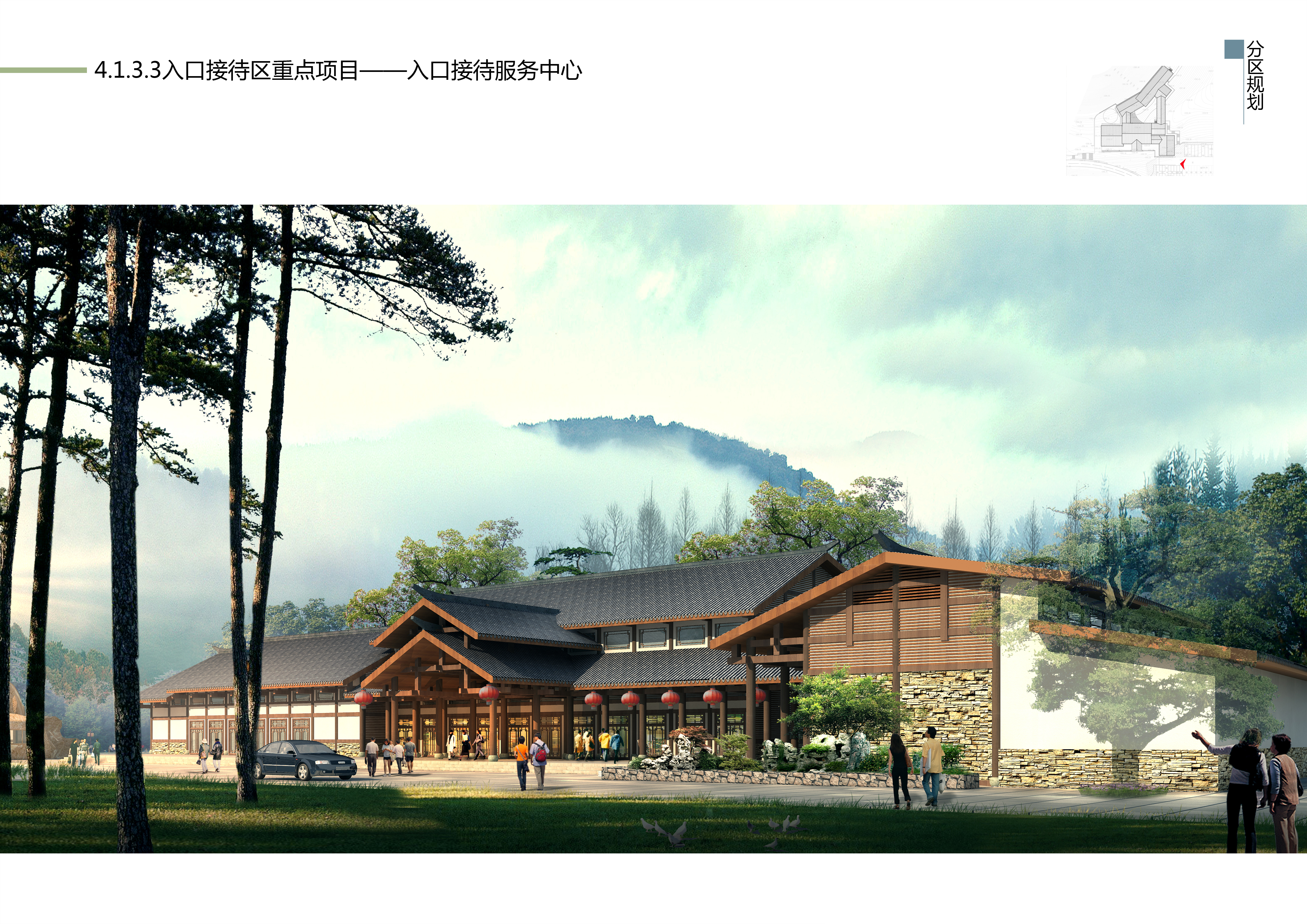 項目遵循“高起點、大視野、大旅游”原則,通過機構科學、嚴謹的咨詢方法和工具進行整合、提煉和分析,提出了“生態優先”、“國際發展”、“集群發展”、“項目拉動”、“和諧發展”五大策略,擬定“天坑地縫·天地人和”的主題定位。充分尊重現狀、利用現狀,采用軸線布局手法,形成本項目“一核一軸·三大片區”的布局結構。