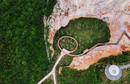 位于湯山國(guó)家旅游度假區(qū)內(nèi)湯山山體南側(cè),是一座廢棄的采石場(chǎng)礦坑,宕口遠(yuǎn)看傷痕累累,走進(jìn)卻氣勢(shì)恢宏——植物已經(jīng)悄然的從破碎的石縫中慢慢長(zhǎng)出,與冷峻的石壁搭配成漂亮的肌理;巨大的采石場(chǎng)的尺度讓人覺得不可觸、不可及,但是熱血沸騰。